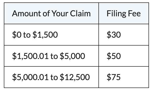 How much does it cost to file a small claim?